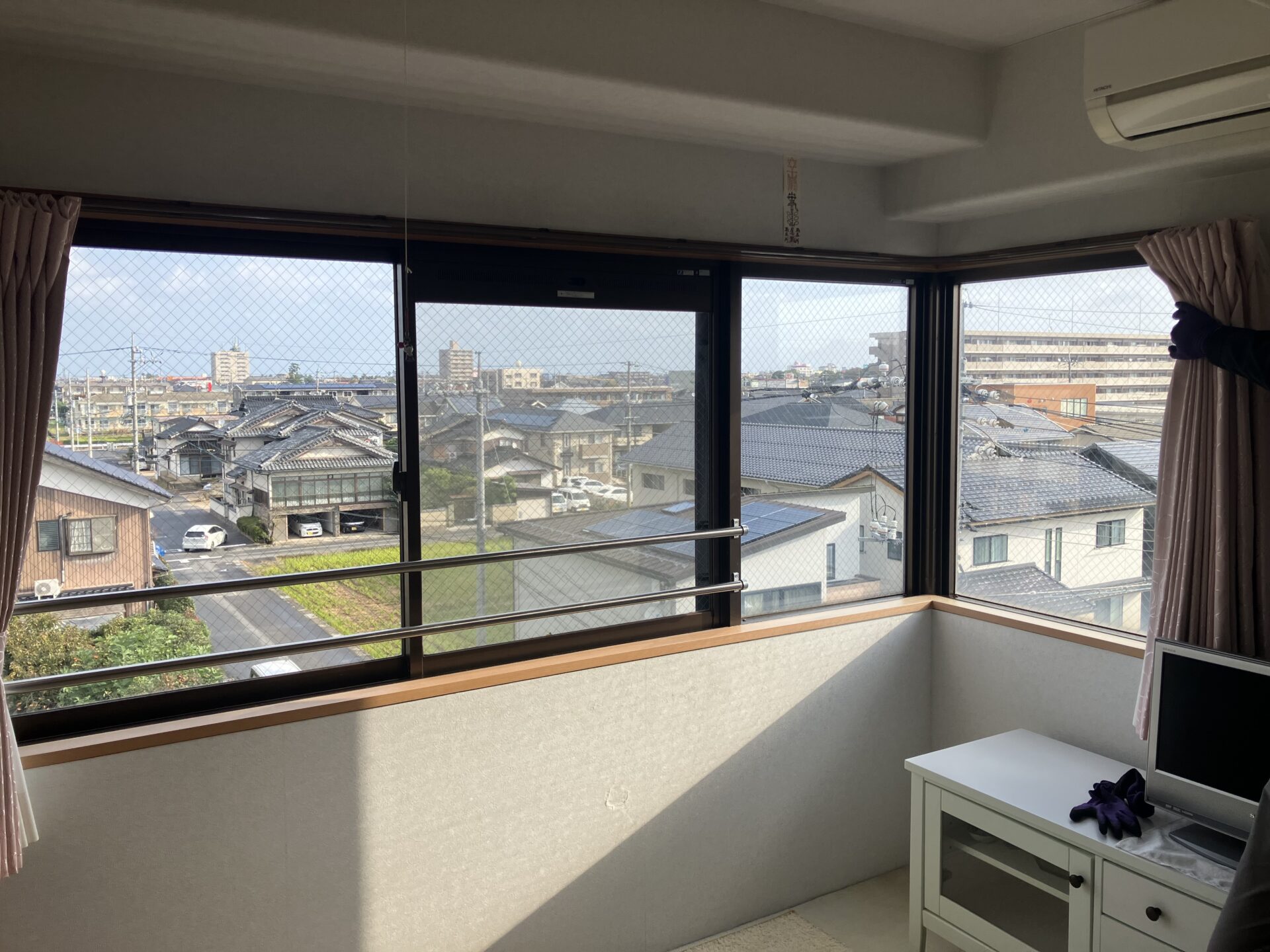 連窓されたコーナー窓にも取付できるか不安…とのことでした。